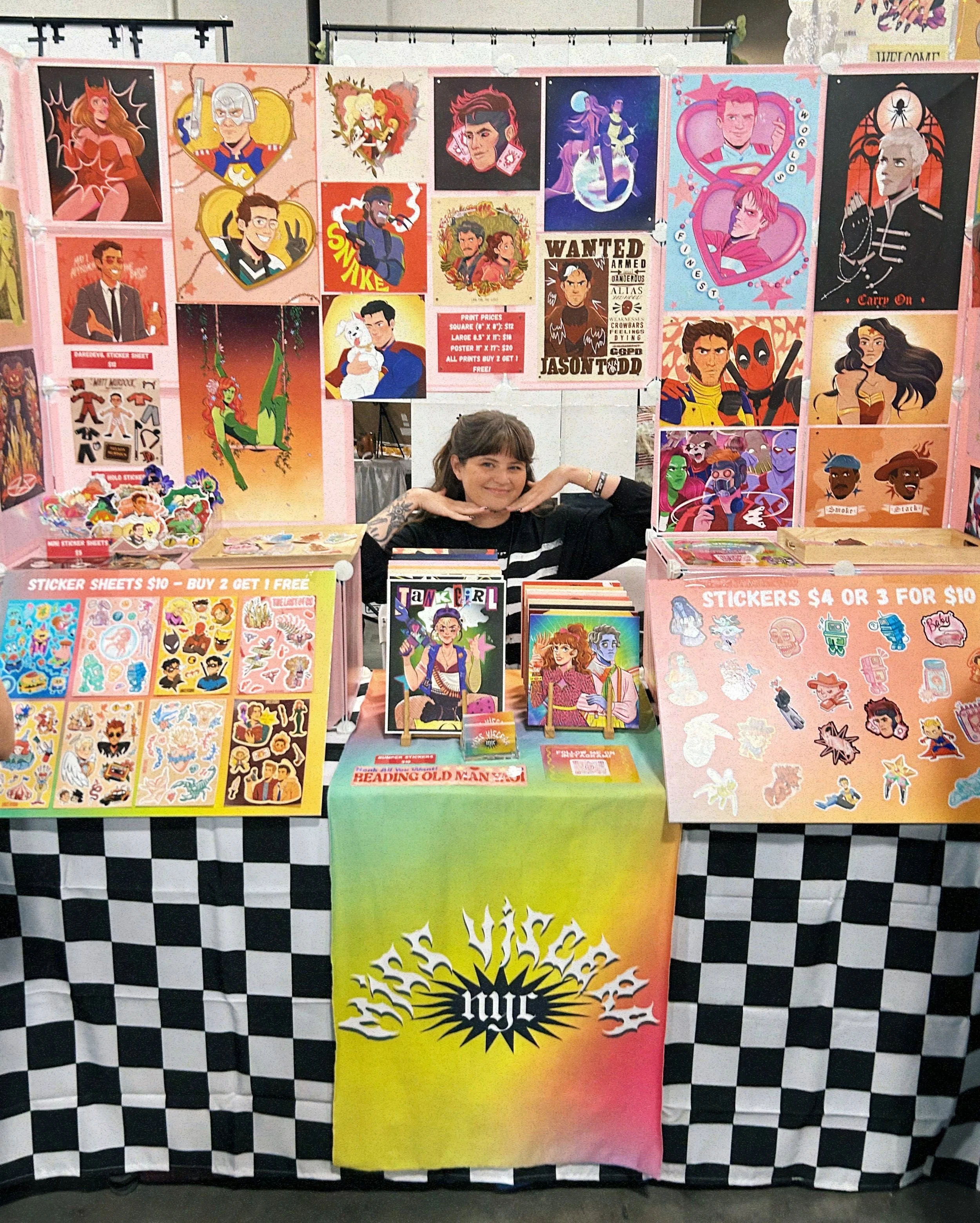 Emma Kraus is an illustrator + professional fangirl currently residing in New York City. She received her Bachelor's in Fine Arts from the University of Iowa, with a focus in cartooning and sequential art. After years of adventures in the art and hardcore scene in the great Midwest, Emma relocated to The Big Apple where she has shown her work at pop-culture and comic based shows like New York Comic Con and FanX. Taking inspiration from the DC comics, old-school horror, and emo music, Emma creates colorful and energetic interpretations of both beloved and original characters. Find her slingin’ her wares at your local comic con, or on her Etsy.